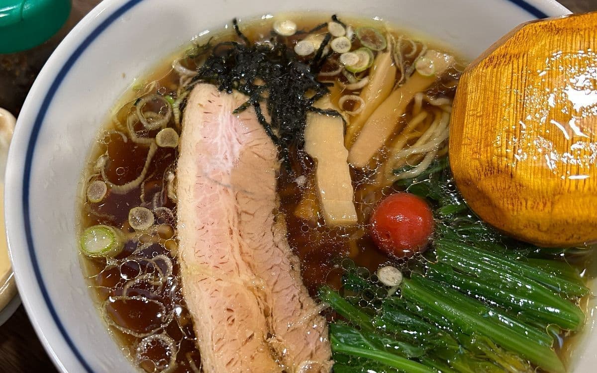煮干しと鶏ガラをベースに編み出したこだわりのスープは絶品。とろとろの豚チャーシュウに添えられた梅干しが、愛しい。