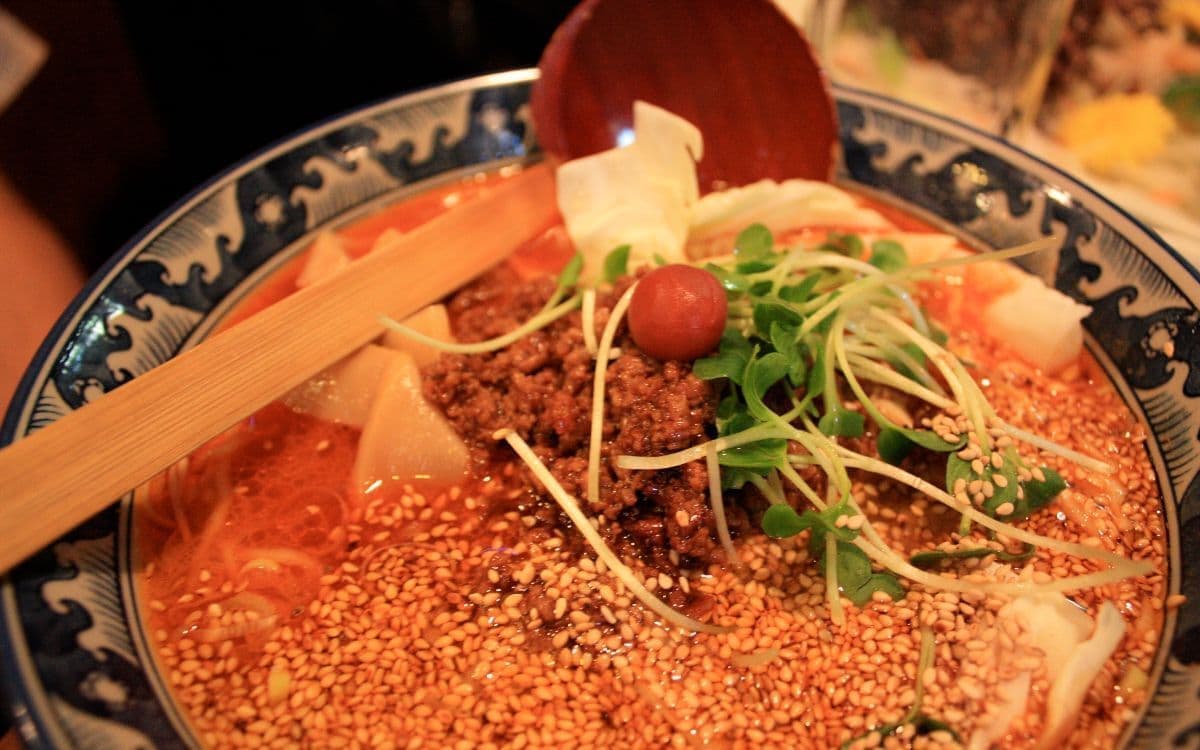 絶妙な挽肉の味わいと甘・辛・酸にコクがミックスしたスープ。飲んだ後でも絶対食べていくという、極旨担々麺ファンの強者も多いのです。