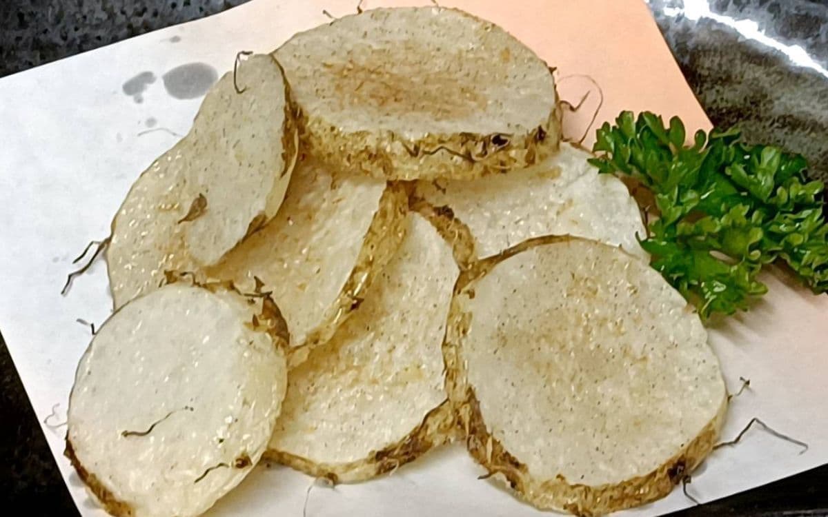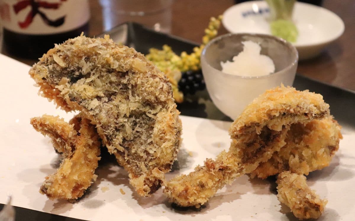 秘伝のタレに漬けた鶏肉に片栗粉をまぶして揚げた、信州松本の名物。鶏肉を揚げる>とりあげる=だから山賊?お酒がすすむ一品です。