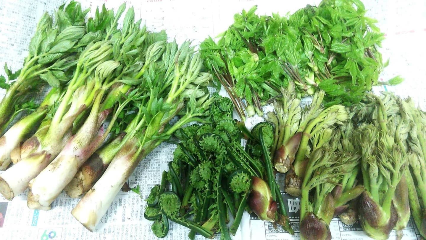 タラの芽・こしあぶら・ふきのとう・こごみ・みず・山ウド・ワラビ・根曲がりだけ等、生命力溢れる地物の山菜を採り立てで料理しています。