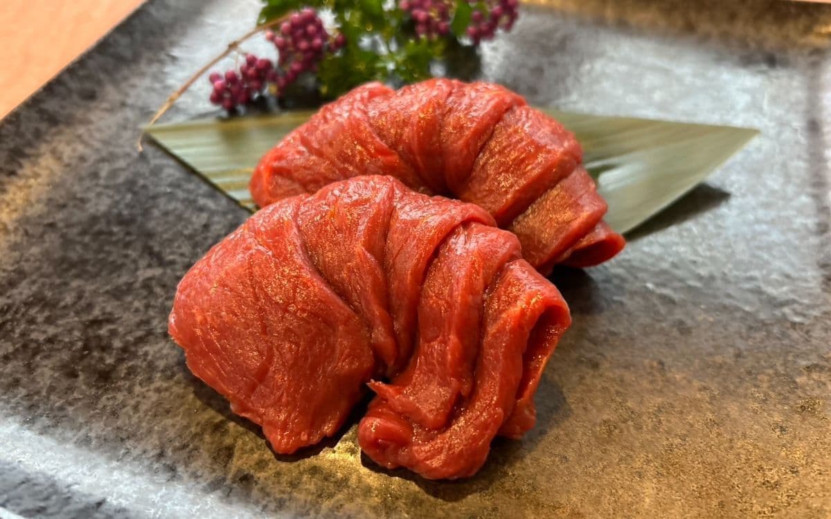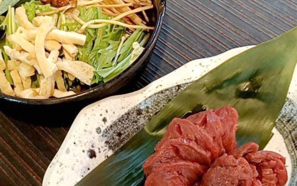 馬刺しは霜降りより赤身、という南信州の先人のお教えを忠実に守っています。ニンニクおろし、生姜おろしをご用意しています。