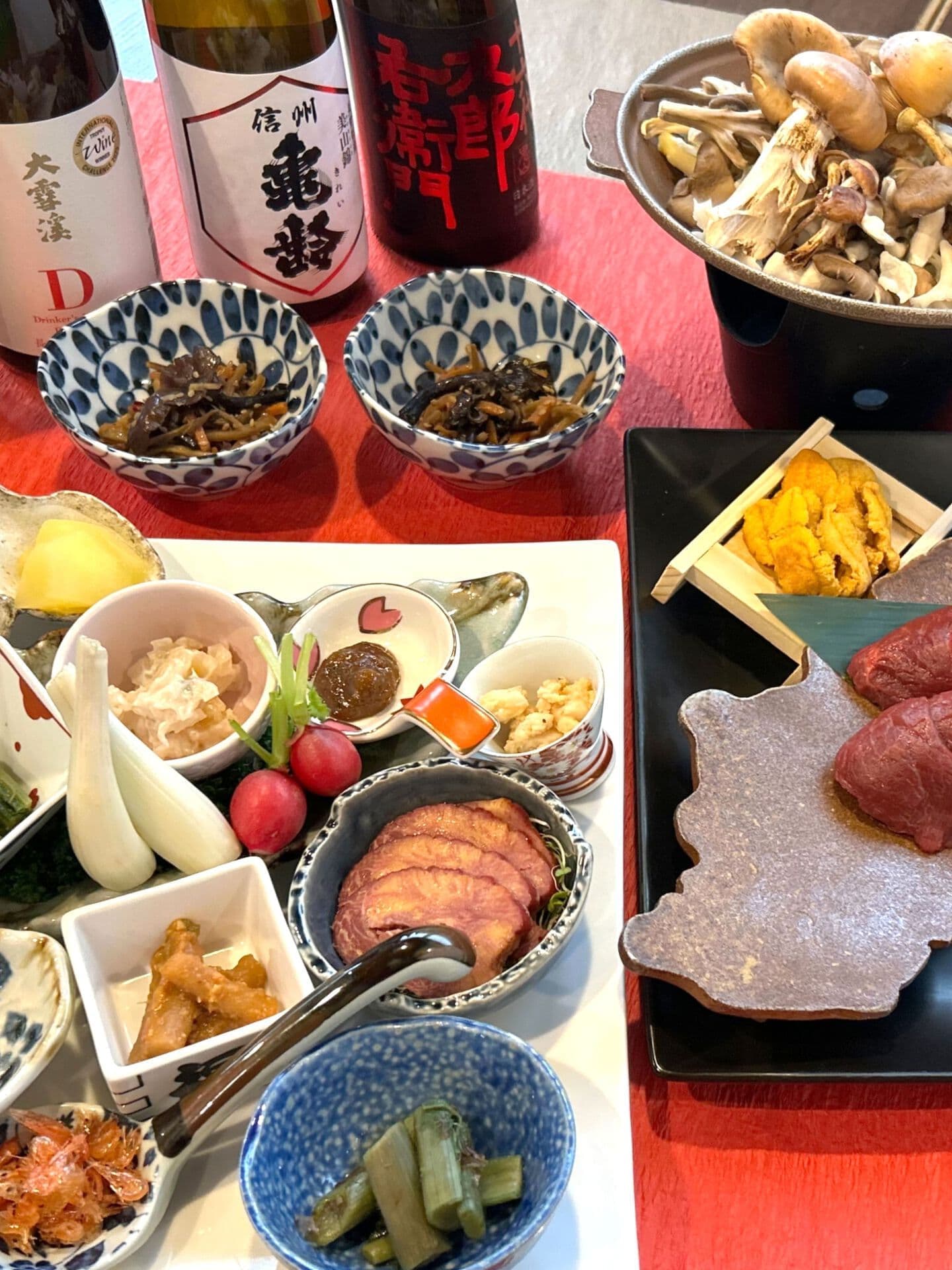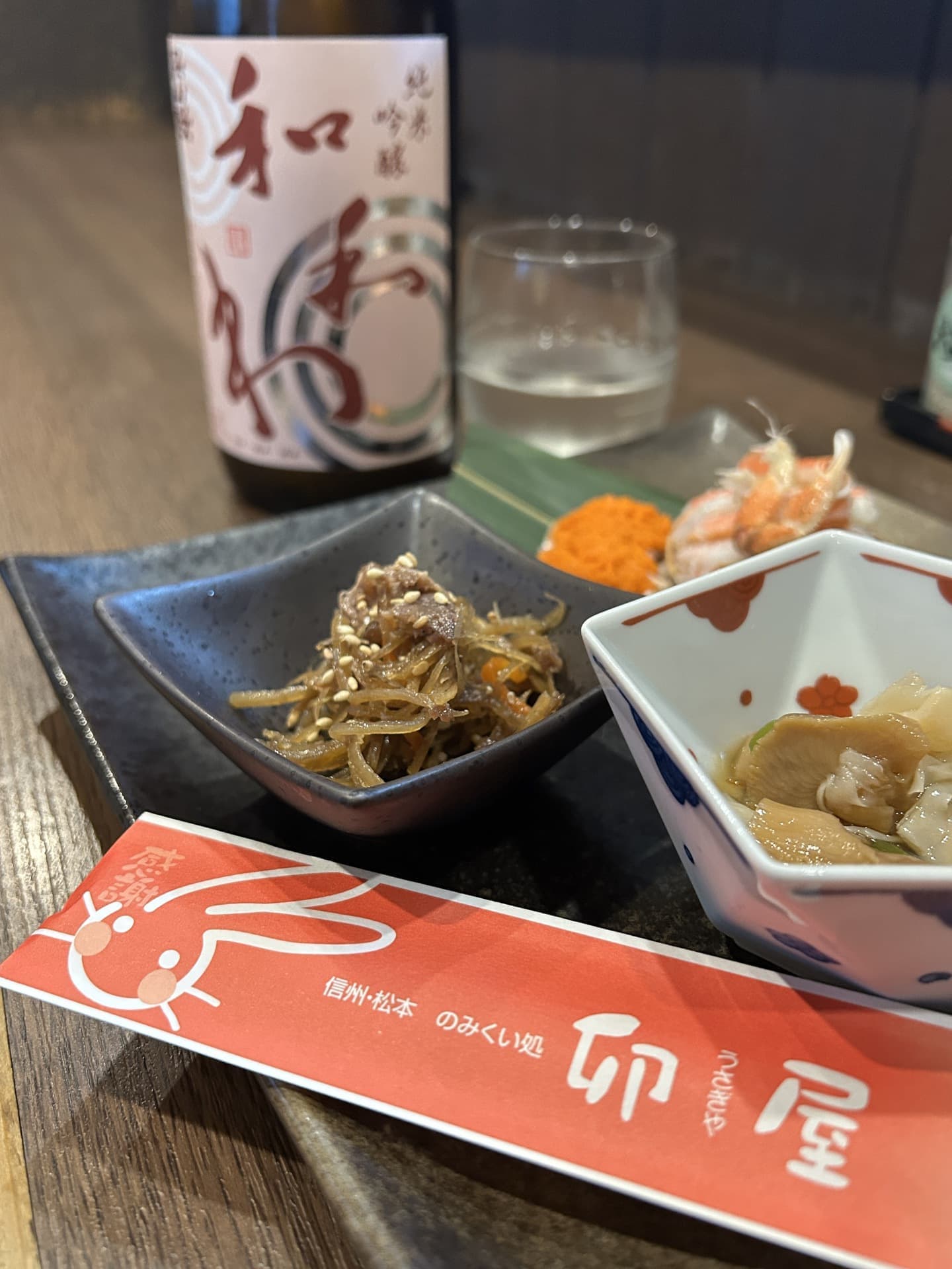 とりあえず先付けとして「信州の旬」5点盛りはいかがでしょう。季節に合わせた珍味食材が楽しみで、これを目当てに一献というファンも多いのです。